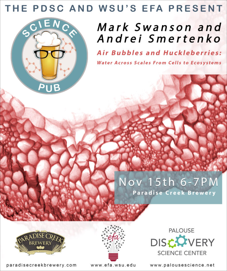 Join Mark Swanson and Andrei Smertenko on November 15th for their pub talk, “Air Bubbles and Huckleberries: Water Across Scales From Cells to Ecosystems”.