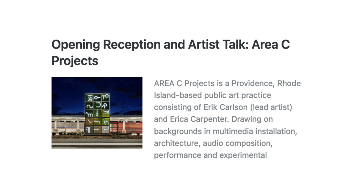 We welcome you to join! Area C Projects collaborators and artist Erik Carlson of Rhode Island will discuss their current public art project for the new U.S. Department of Agricultural Research Service Plant Sciences Building on the Pullman campus.