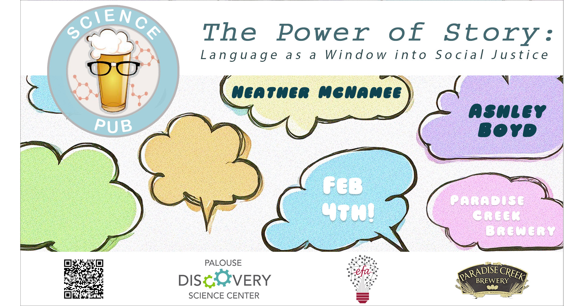 Join Ashley Boyd and Heather McNamee on Feb 4th for their pub talk, “The Power of Story: Language as a Window into Social Justice”.