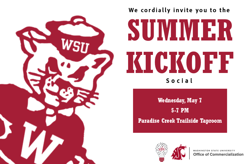 The WSU Office of Commercialization and the Entrepreneurial Faculty Ambassadors cordially invite you to the Summer Kickoff Social on Wednesday, May 7th, 5:00 – 7:00 p.m. at Paradise Creek Trailside Taproom, 505 SE Riverview St. Pullman.